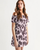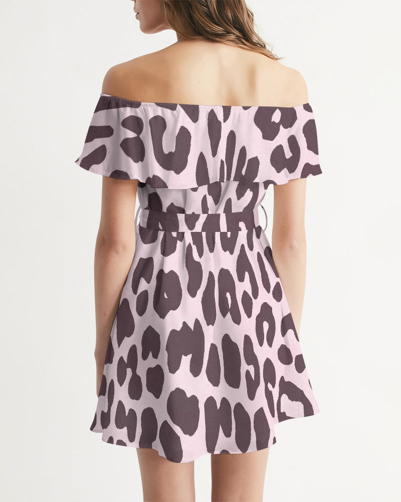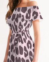 Schulterfreies Damenkleid mit rosa Leopardenmuster