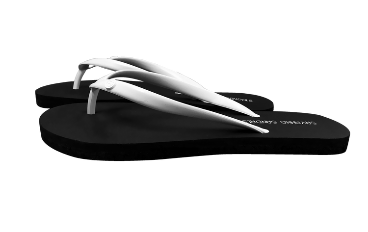 Unsere Farbe Bright White bietet den perfekten Kontrast zu den Sohlen unserer schwarzen Sandalen aus recyceltem Gummi. Unsere Farbe Bright White passt perfekt zu einem sommerlichen Sommerkleid und einer Bräune! Diese figurbetonten Sandalen aus 100 % recyceltem Gummi sind auf Komfort ausgelegt und verfügen über ein AIR8TED-Obermaterial, das sich beim Tragen an die Form Ihres Fußes anpasst.