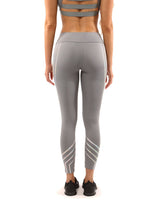 The Savoy Active Laguna Set - Leggings & Sports Bra in grey delivers form-fitting compression with a stylish design. Add a touch of style to your basic routine with these highly functional yet eye-catching stylish striped leggings and comfy racerback sports bra!