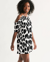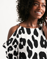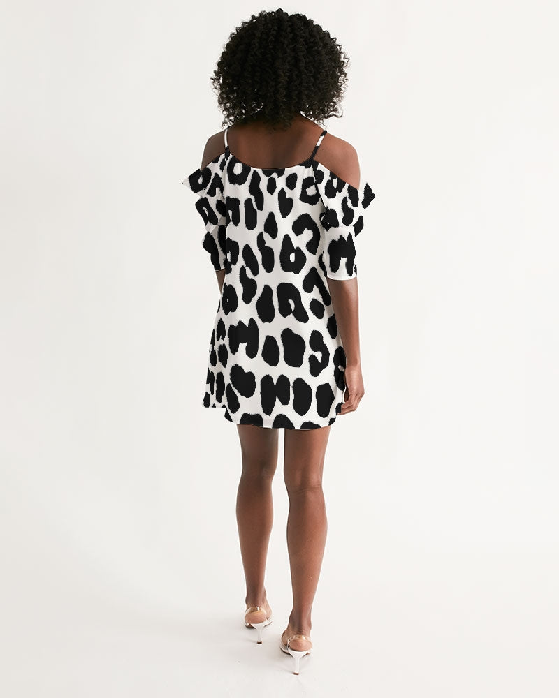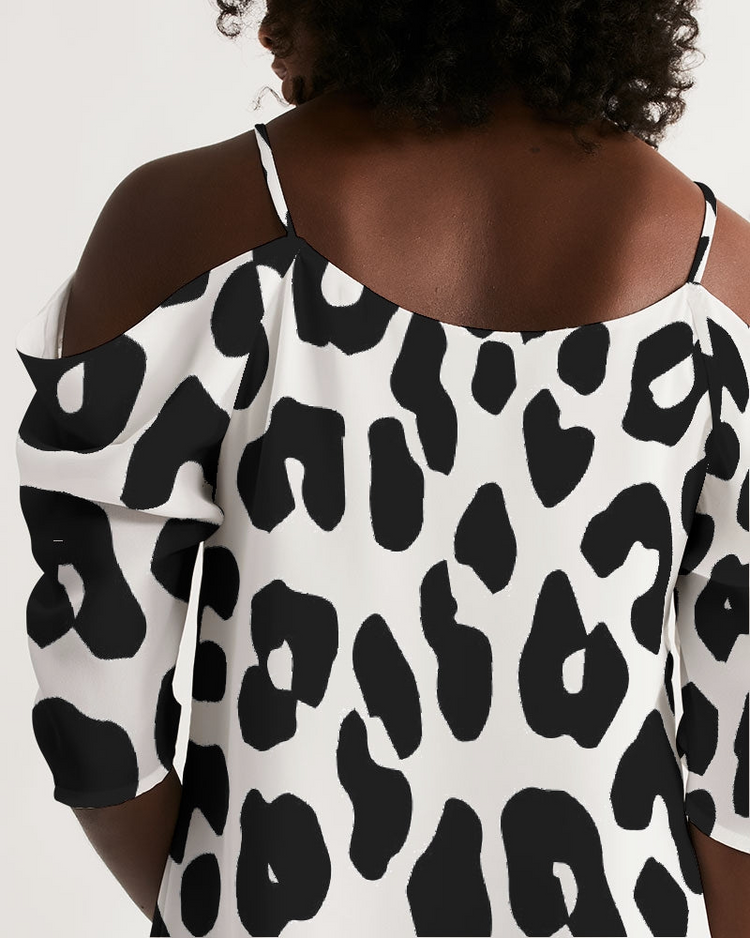 The black and white leopard print is bold and eye-catching, making this dress perfect for any occasion. The lightweight fabric is breathable and easy to care for, making it a great choice for everyday wear.