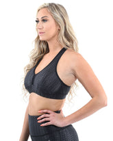 The Savoy Active Genova Activewear Sports Bra in black [MADE IN ITALY] delivers form-fitting compression with stylish design. Add a touch of style to your basic routine. Take your workouts inside or out and be ready to sweat.