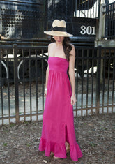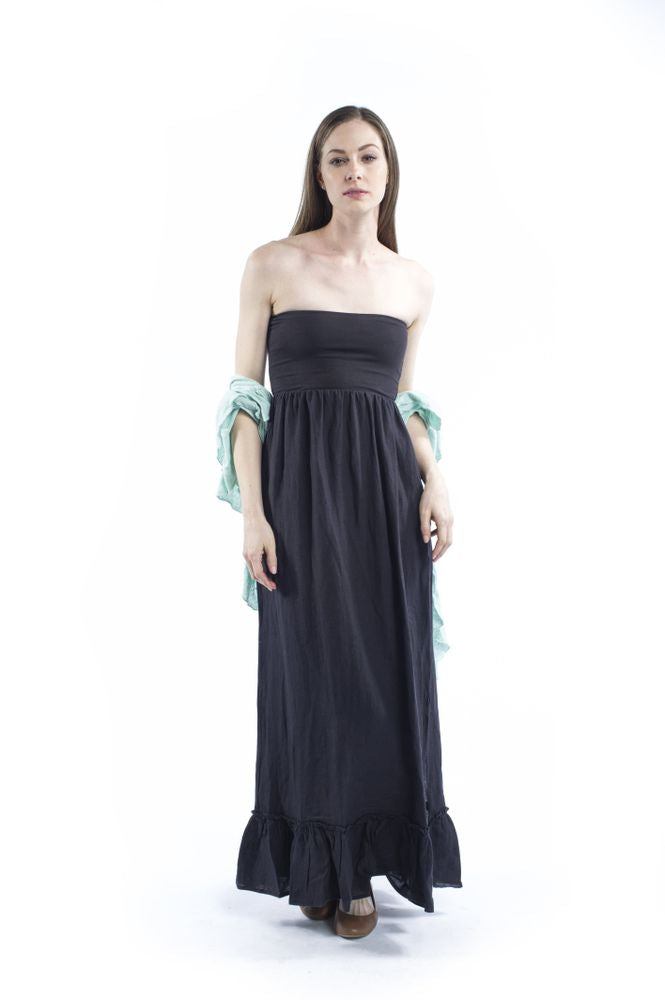 Cool, Casual and Stylish...this Christine Maxi dress is sure to be a closet favourite. It is super comfortable featuring a cotton lycra top and a cool and breezy linen skirt. Also, it has an amazing ruffle hem on the skirt that really moves when you walk. Throw it on at the beach or put on some heels and wear it to dinner. Order your Christine Ruffle Hem Maxi Dress.