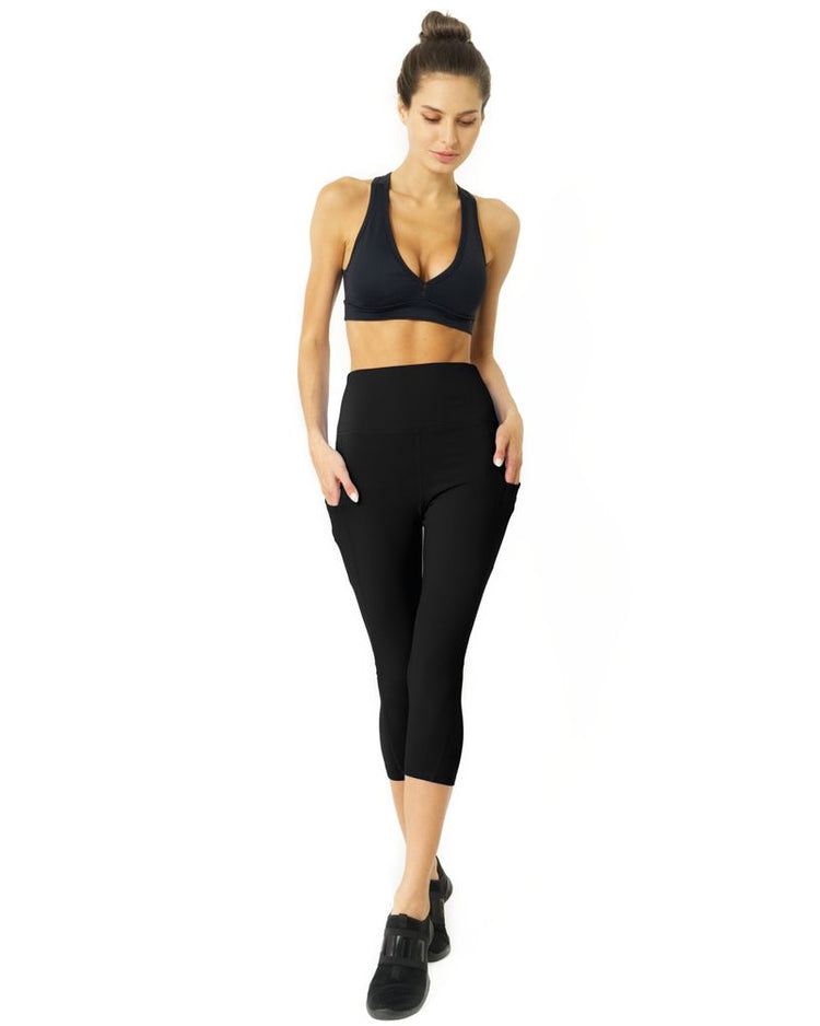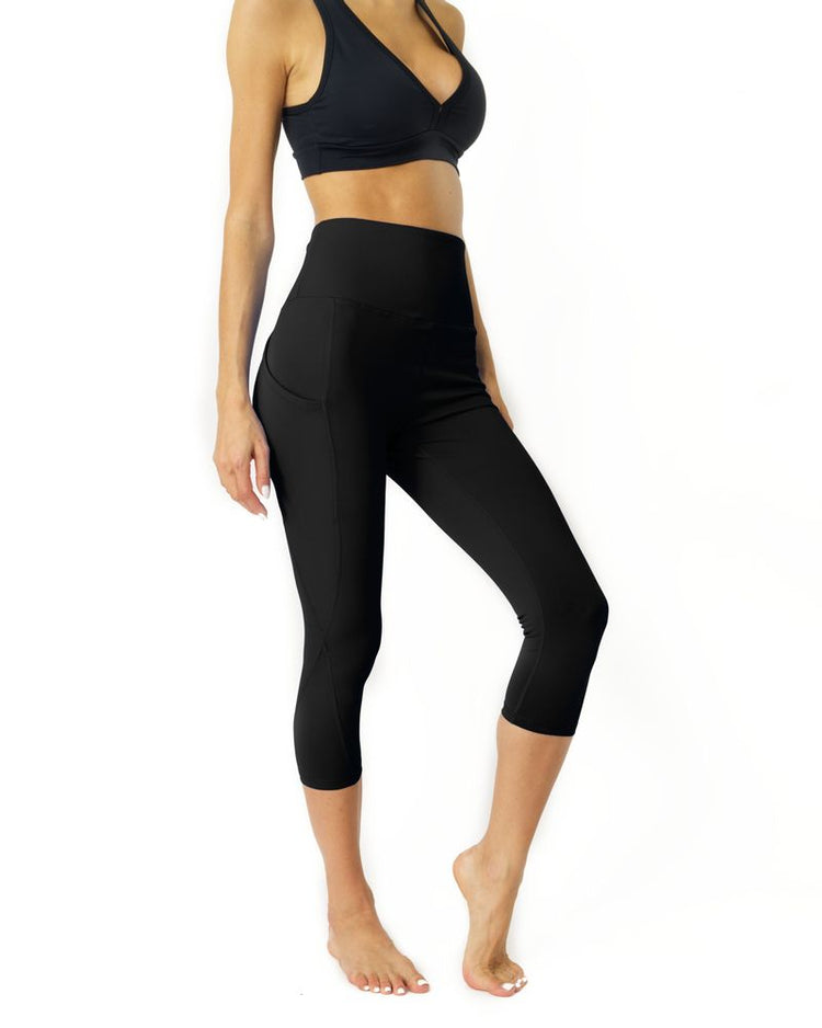 High Waisted Yoga Capri Leggings - Black