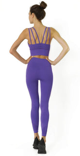 Get the ultimate in comfort and mobility with Savoy Active's mesh seamless set. Included are our racerback sports bra and leggings. Built for all-day activities as well as high-impact workouts. The Athletic bra is clasp-free with wide shoulder straps and a supportive fit. Take your game to the next level in our ultra-luxurious mesh leggings with ribbing detail in purple. Featuring a sturdy and form-fitting fabric to shape around your body and cut-out mesh detailing for extra cooling and breathability. Look your best during your workouts or just a casual day about town. Confidently step into the gym for spinning, kickboxing, Pilates, yoga, or circuit training!