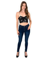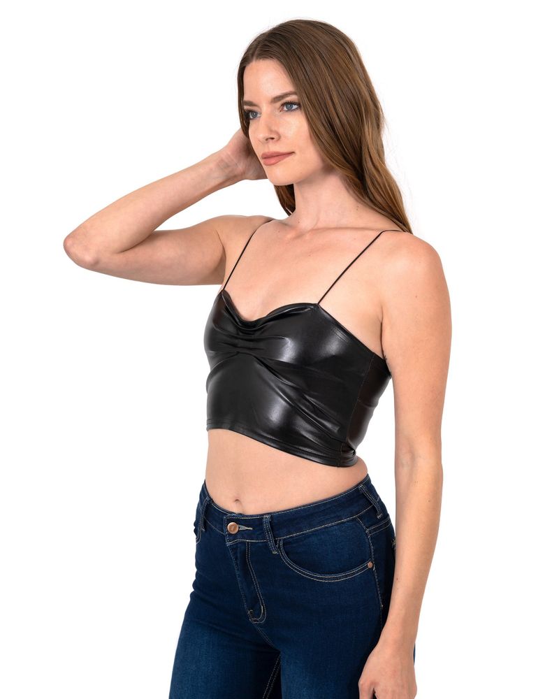 Crafted with 100% polyester, this bralette is not only fashionable but also comfortable to wear. Whether you're dressing up for a night out or looking to add some edge to your everyday look, the Florian Vegan Leather Bralette is a versatile piece that can be dressed up or down.