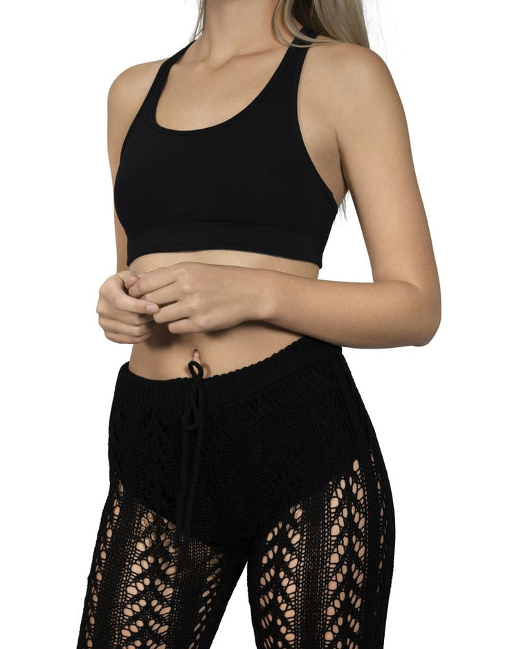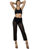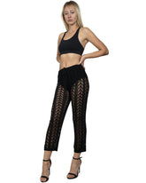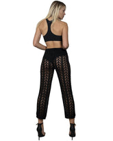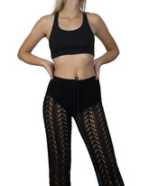 Presenting the stunning Kimridge Crochet Pant in black - the ideal addition to your summer wardrobe! Turn heads on your next beach vacation with these elegant pants. Embrace comfort in warmer weather with these pants made from a breathable cotton blend. Featuring intricate mesh crochet fabric, they add an ethereal charm to your outfit. The waistband includes a drawstring tie to ensure a secure and comfortable fit, so you can feel confident throughout the day. These pants can transition effortlessly from a day of lounging by the pool to a night of strolling on the beach. Match them with your favorite bikini top or a flowing blouse and look effortlessly stylish all day. We're confident about the quality of our product and offer an unconditional return within a 30-day period. Upgrade your wardrobe now and add the Kimridge Crochet Pant to your cart and start planning your next beach adventure! Shop now.