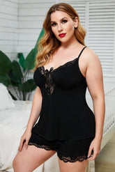 Introducing our Lace Trim Plus Size Pajamas Set - the perfect addition to your sleepwear collection! This two-piece set is designed to make you feel pretty and confident while you catch up on your beauty sleep.