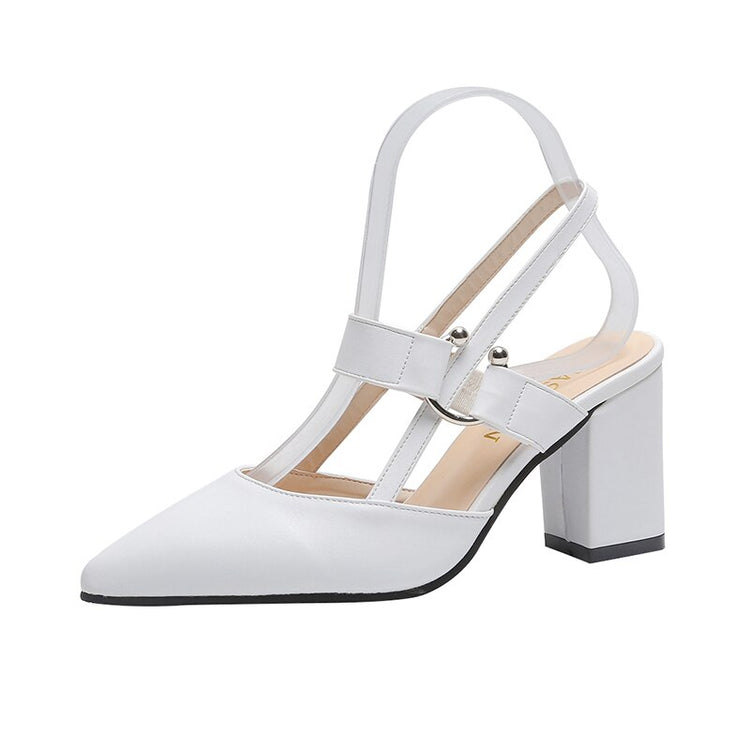 Step up your shoe game with these chic and comfortable Slingback High Heels! Crafted with a sleek and stylish design, these sandals are the perfect addition to any fashion-forward woman's shoe collection. The pointed toe and square heel add a touch of sophistication, while the metal decoration adds a trendy and modern element.