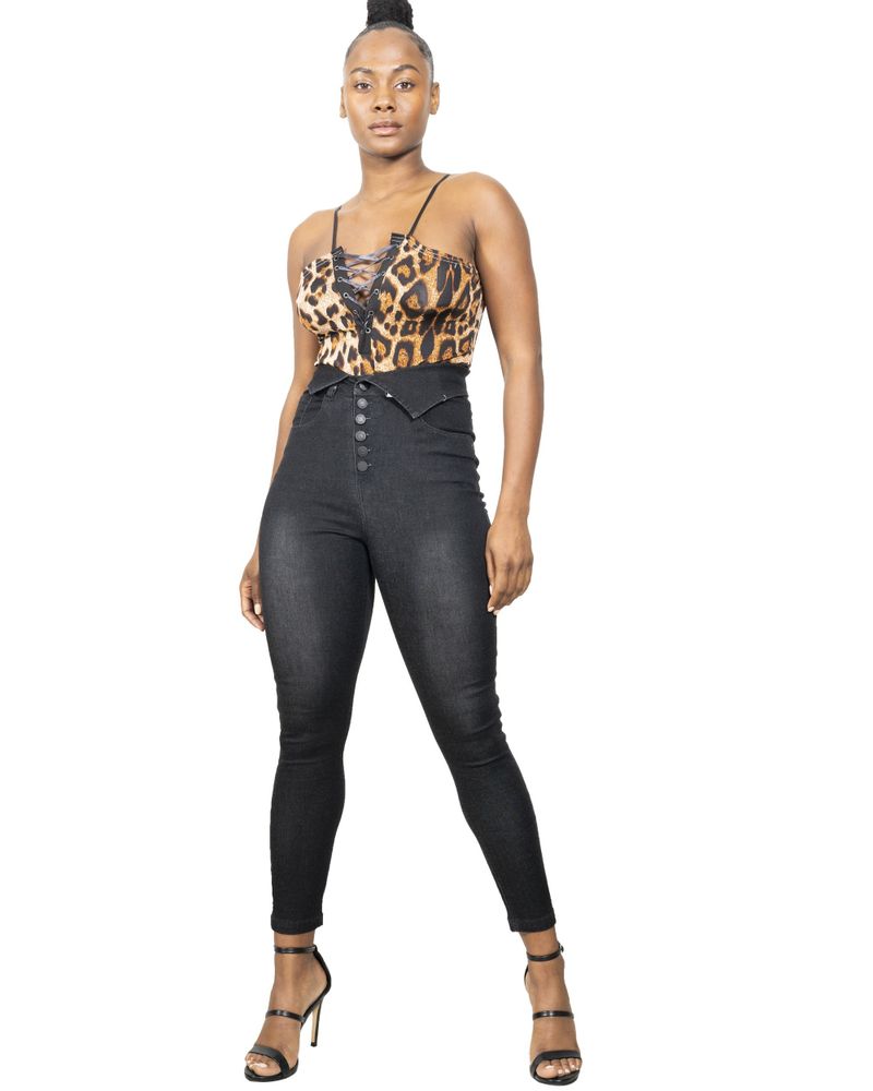 Featuring an overlap detail at the waist and a button-up front, these jeans are designed to flatter your figure and provide a snug fit. Whether you're running errands or going out for a night on the town, these jeans will keep you looking and feeling your best.