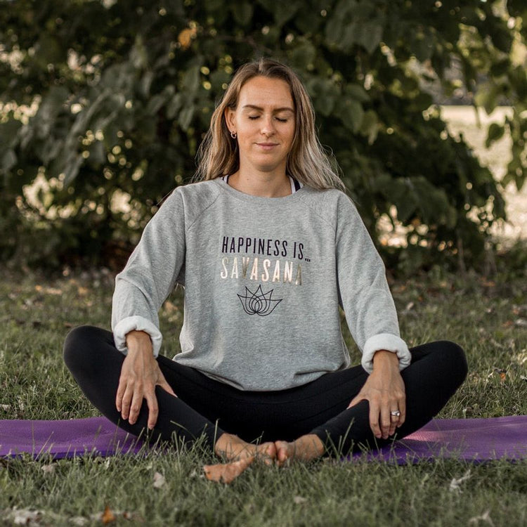 Every pose that stretches us, grounds us and challenges us only comes to fruition with repose. It’s why we love savasana, the asana where we can lie back and let the work we’ve done sink in. Through stillness comes strength, and through stopping comes our ability for action. Because we all could use a little more stillness in our life, we’ve created up our Happiness Is… Savasana sweatshirt. Designed for the yogi who lives the lifestyle on and off the mat, this sweatshirt features our super-soft cotton bamboo cotton blend for a cosiness that moves with you.