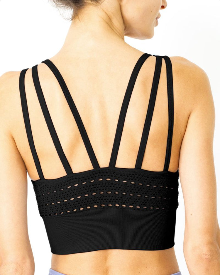 Sutiã de malha sem costura com recortes - preto