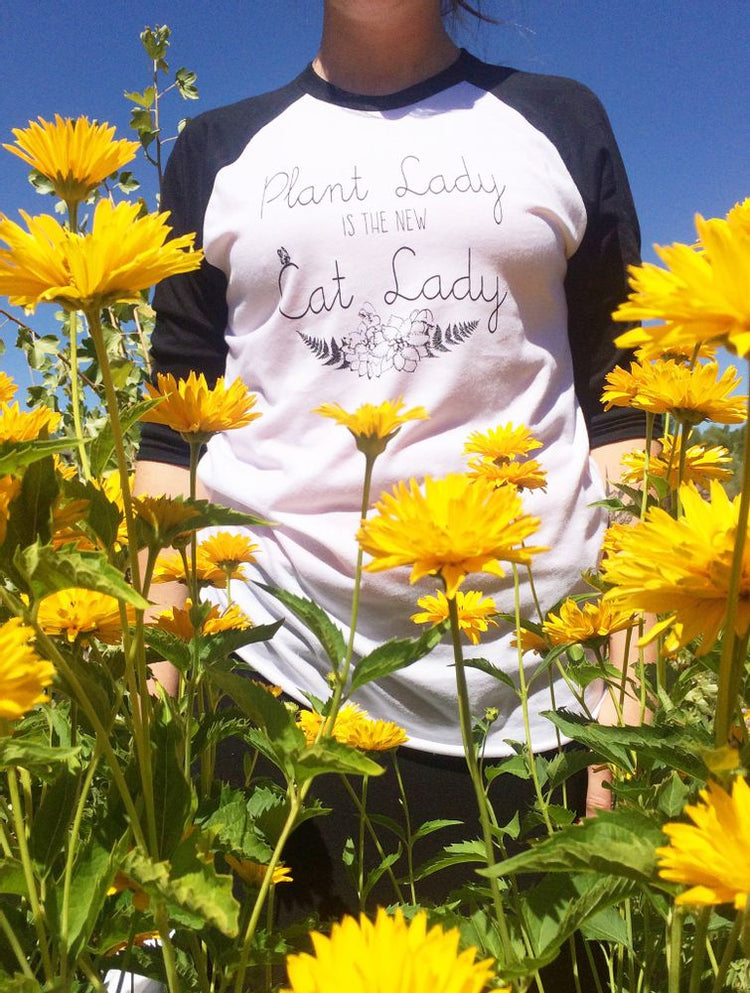 Plant Lady Adult Unisex Baseball Tee is the perfect choice for the plant lover in your life. This hand screen printed 3/4 sleeve raglan tee is available in sizes small, medium, and large. It has a relaxed fit and is unisex sized, so the corresponding women's size is one size smaller.