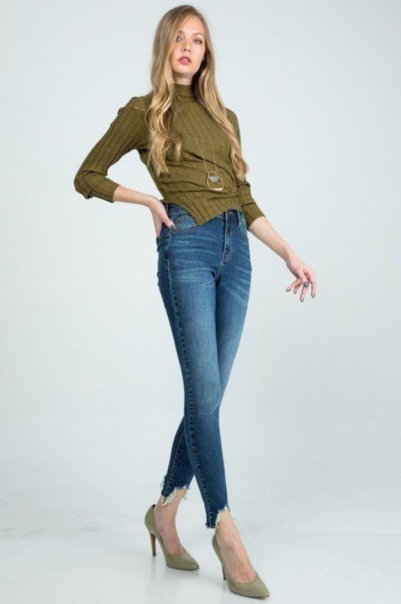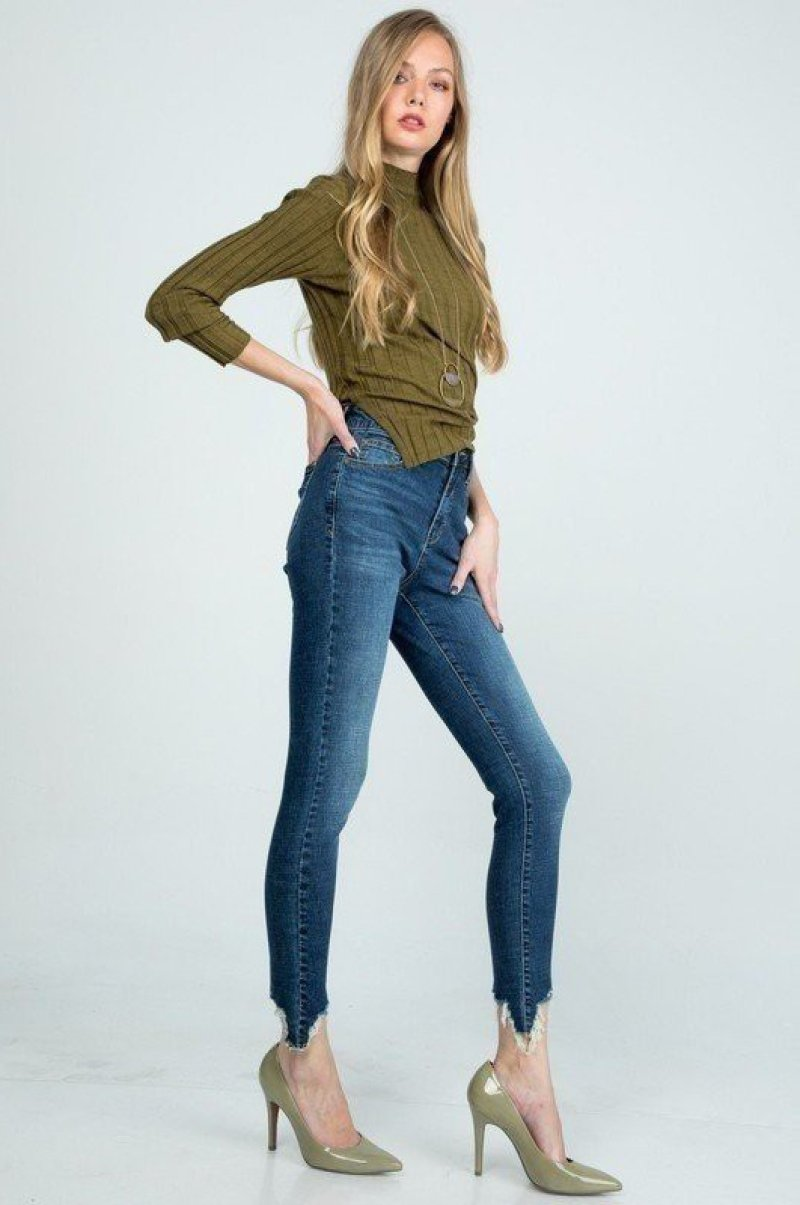 Distressed Bottom Hem Skinny Jeans