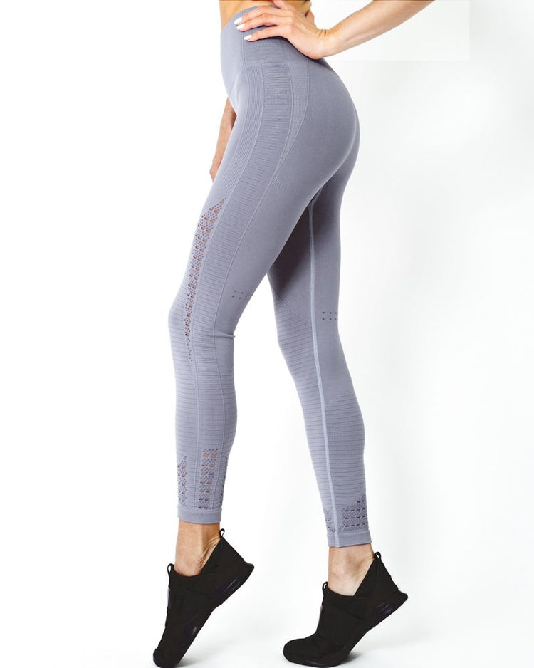 Mesh Seamless Legging with Ribbing Detail - Grey Purple